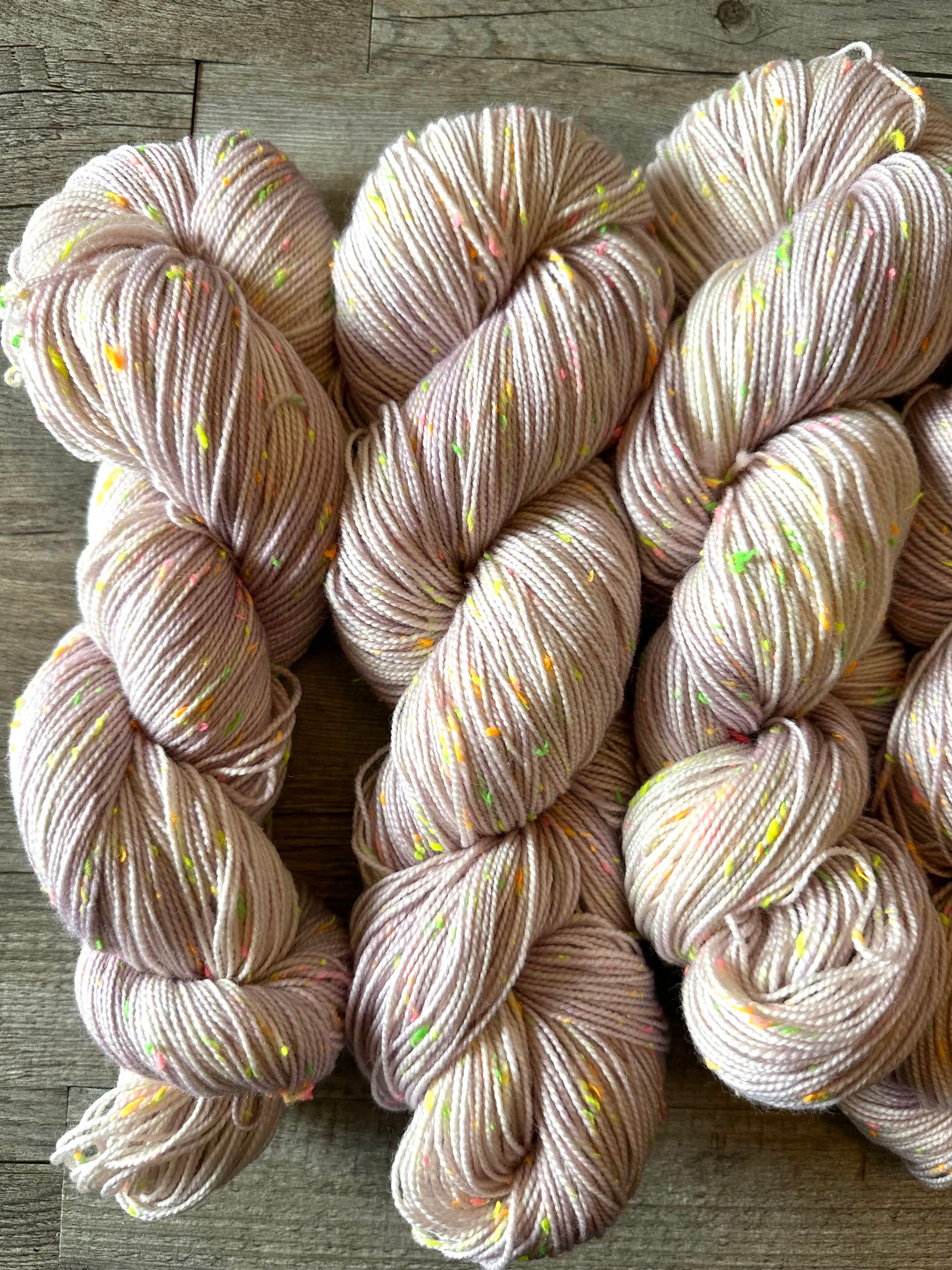 This new yarn base is the same amazing merino sock yarn with added neon neps!