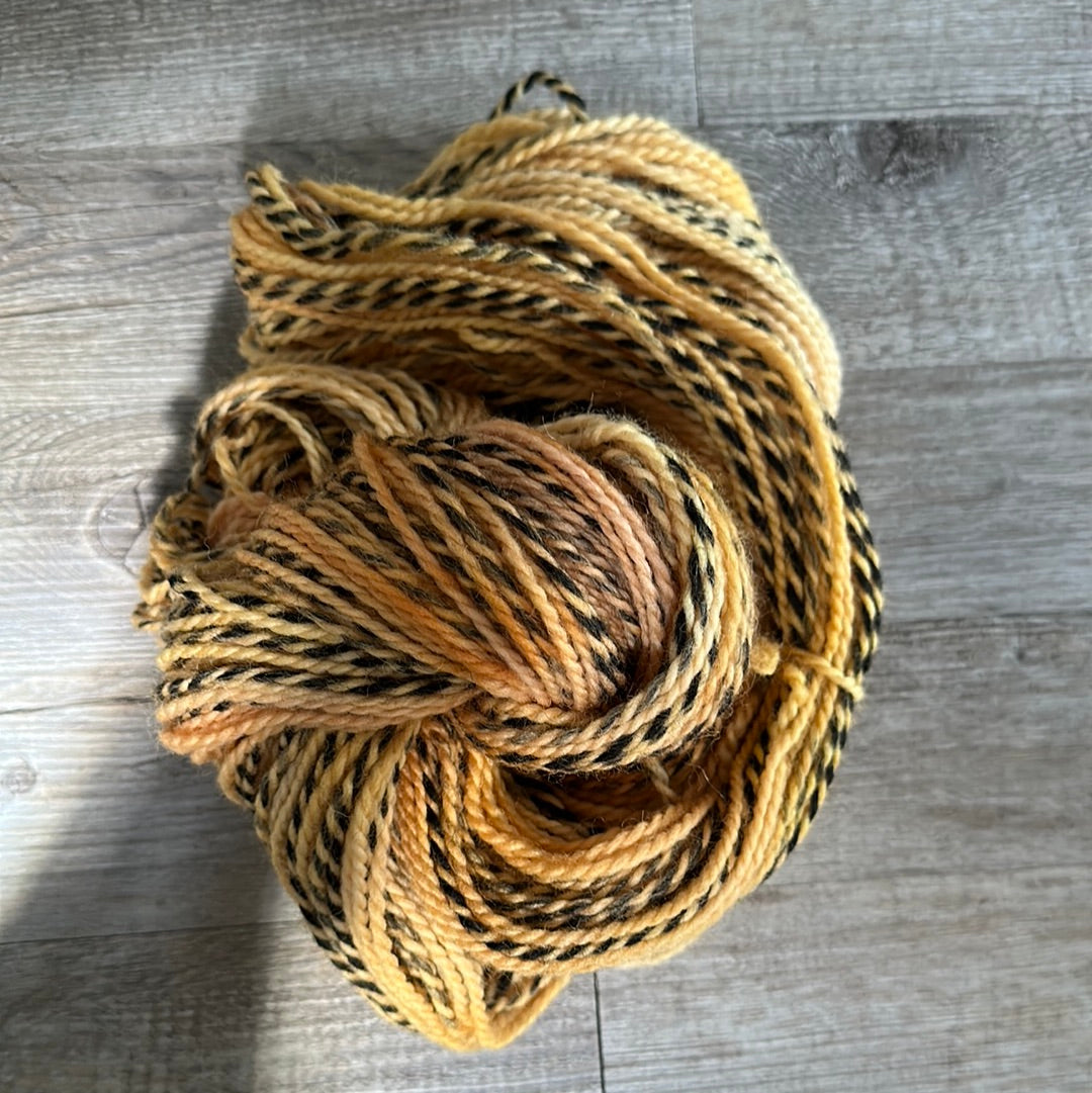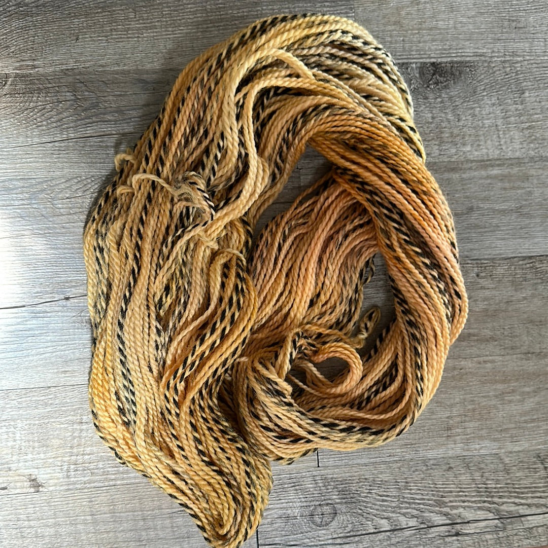 Introducing our new yarn base: Golden sunset. This yarn is made from 100 percent highland wool, which gives it a soft and springy texture. The worsted weight makes it ideal for cozy sweaters, hats, scarves and more. The colorway is inspired by the warm and radiant hues of the setting sun, from deep orange to pale yellow. Golden sunset is a limited yarn, so don't miss this chance to add some sunshine to your stash!